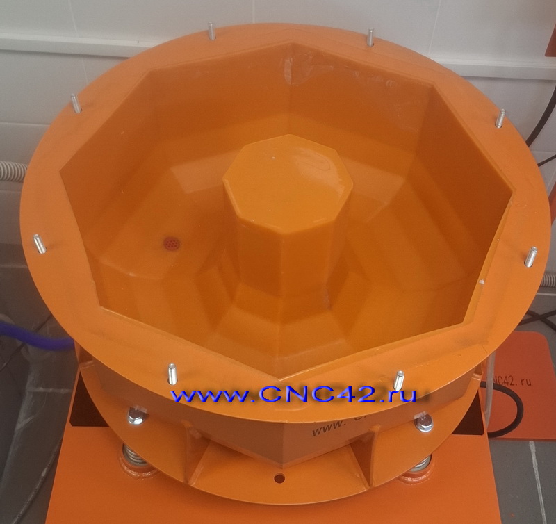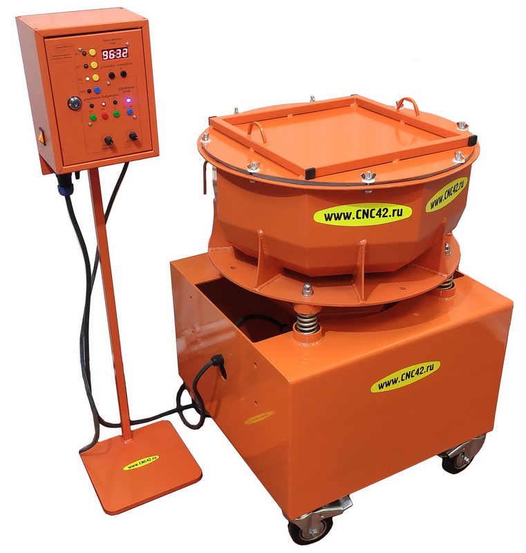 Универсальный торовый станок для виброгалтовки с объемом бака до 30 литров и рабочим объемом до 25 литров. Станок предназначен для осуществления процессов галтовки (шлифование, полировка, очистка) вибрационным способом в сухой и мокрой среде. Процесс обработки может осуществляться всеми видами наполнителя для галтовки. Станок позволяет осуществлять регулировку частоты колебания лотка, что позволяет настраивать нужный режим обработки. Станок имеет настраиваемую функцию реверсивной обработки РРО.